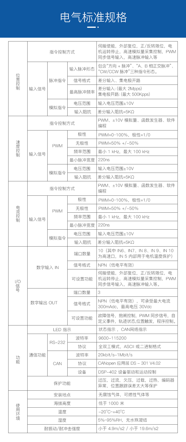 ?CAN2.0 局域總線,兼容 CANopen DS-402,波特率最高 1MHz ;