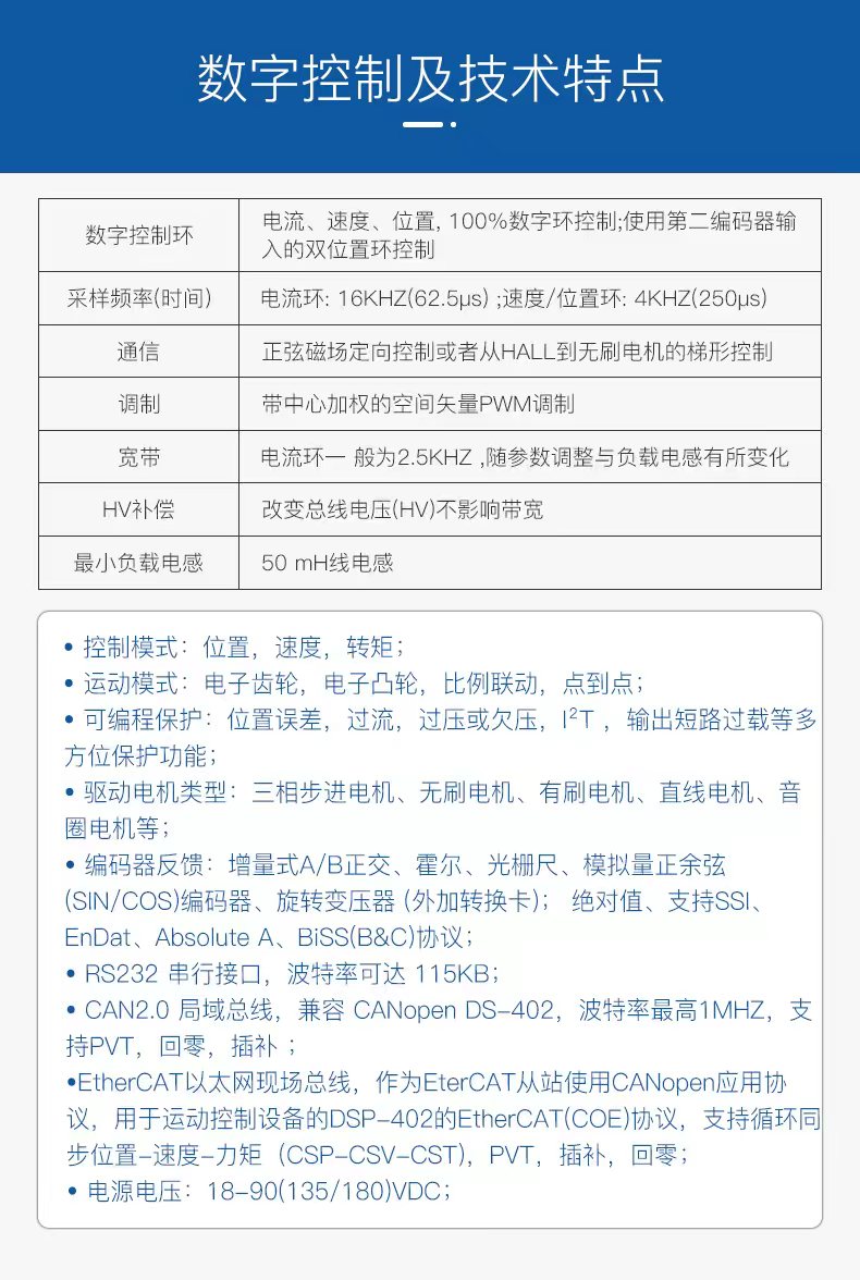 ?EtherCAT 以太網(wǎng)現(xiàn)場總線,作為EtherCAT從站使用CANopen應用協(xié)議,用于運動控制設備的DSP-402的EtherCAT(CoE)協(xié)議,支持循環(huán)同步位置-速度-力矩(CSP-CSV-CST),PVT,插補,回零;